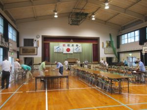 明日は今津敬老会です お知らせ 2016.10.02 2016.09.18 明日(9月19日)11時から「今津校区の敬老会」が今津小学校で行われます。 今日は13時30分から自治協議会役員総出で準備をしました。 明日の天候が心配されますが、予定通り実施します。 校区の高齢者の皆様、お待ちしています。