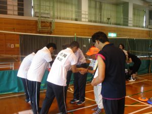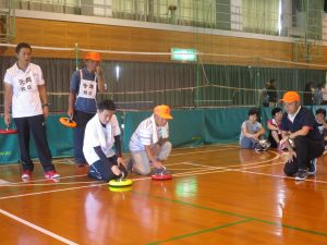 カローリングでは最初の試合でお隣の元岡校区と対戦しました。元岡校区は全員育成会の皆さん。若々しい選手ぞろいです。対する今津の選手は自治協議会役員の高齢者ばかり。なのに結果は今津の勝ち。元岡選手の敬老精神に感謝感謝!試合後、仲良く記念写真撮影☟