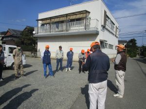 作業が終了し、歓迎横断幕の前でスタッフ集合写真。☟