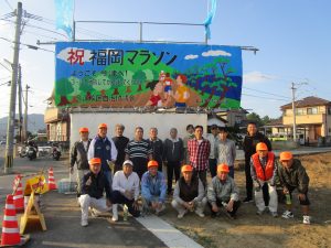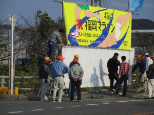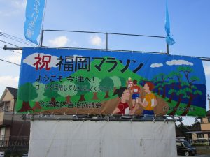 いよいよ明日「福岡マラソン2019」が行われます。今津校区はちょうど25キロ通過点となります。今津校区では選手の皆さんが今回のマラソン出場がよき思い出となるよう、校区自治協議会、スポーツ振興会、今津小学校が心を込めて歓迎の準備をしました。