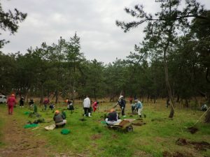松苗200本を植えました お知らせ 2020.03.09 3月7日(土)、今津松原に松苗を植えました。 前日6日に竹立て作業を行いました。☟ 当日は40人が参加して、松苗200本を植えました。大きく育ってほしいものです。作業を行った皆さん、お疲れ様でした。 ☟