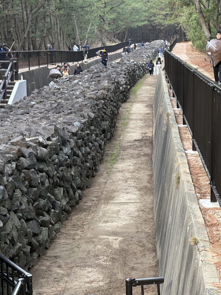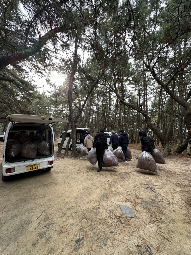 お知らせ3月7日(土)今津元寇防塁と松原清掃活動を行いました。今津校区では毎月第一土曜日を「防塁・松原清掃の日」と位置づけ、地元住民を中心にボランティアによる清掃活動を行っています。この日は地元民と他校区からと、高校生(福岡舞鶴高校、玄洋高校)、市役所職員で総計53人の参加でした。約1時間の清掃活動、お疲れ様でした。