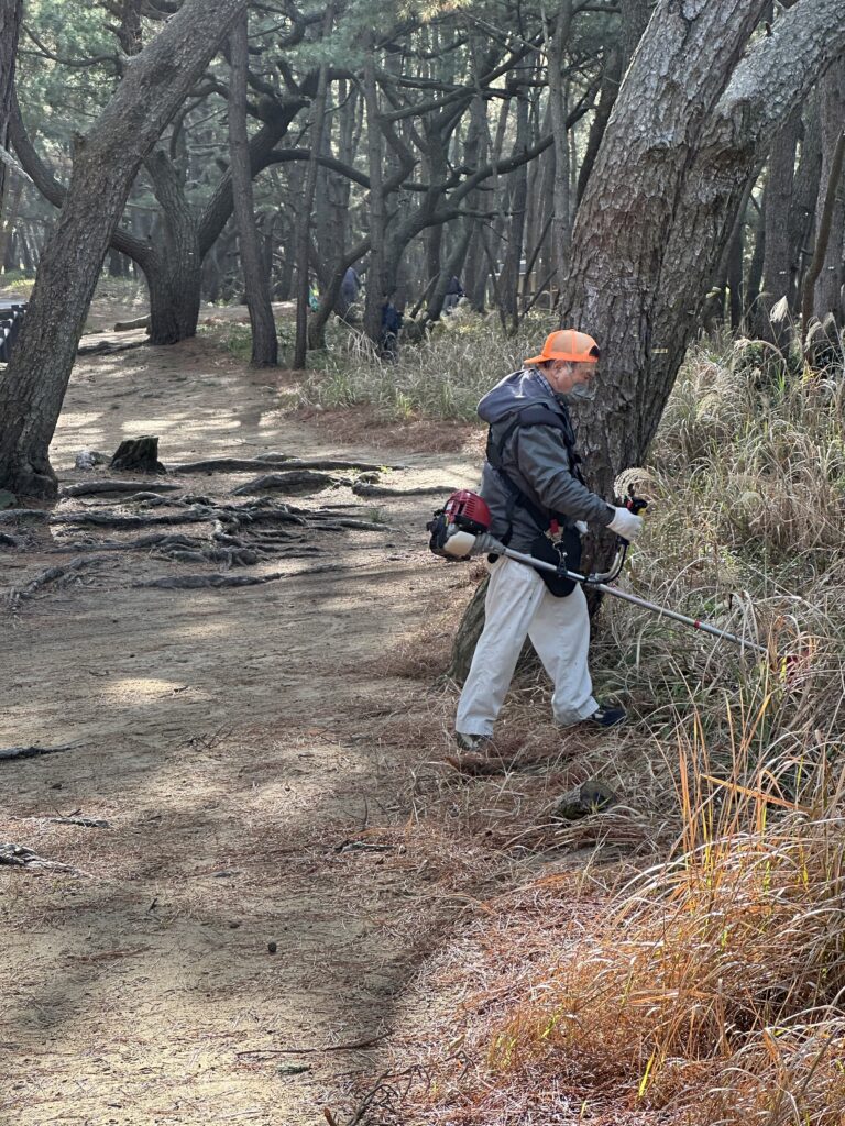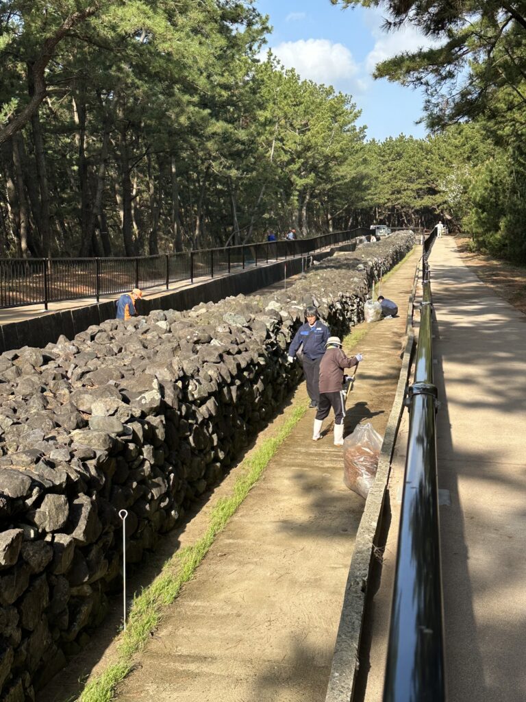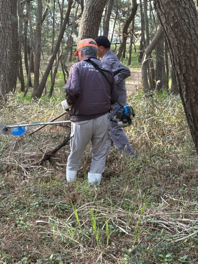 お知らせ 令和8年4月5日(日)、元寇防塁・松原清掃活動を行いました。活動予定日の4月4日が雨天で5日に順延されました。そのためか、玄洋高校・福岡舞鶴高校の参加がなく、地元ボランティアと行政の方だけの少人数となりましたが、皆さん約45分間防塁付近の草刈りと松葉かきを行いました。